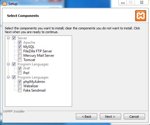در این مرحله در پنجره components همه موارد به صورت پیش فرض انتخاب شده است به شما توصیه میکنم به تنظیمات این مرحله دست نزنید و به مرحله بعدی بروید.